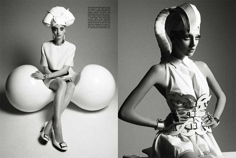 Paper Nights – The December issue of Vogue Italia showcases designer duds alongside the fantastic creations of the Paper-Cut-Project with a beauty supplement photographed by Greg Lotus. Starring Codie Young, the black and studio images feature styling by Giovanna Battaglia which give the paper creations an elegant touch with ivory designs from the likes of Stella McCartney, Yves Saint Laurent and Chanel.